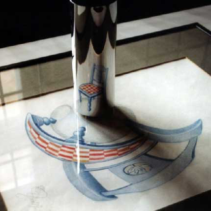 - Mirror anamorphosis showing a chair, Adriaan P. Goddijn CC BY-SA